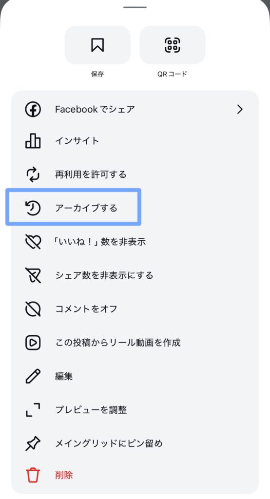 - アーカイブするといいね・保存してくれた人の一覧からも非表示になる