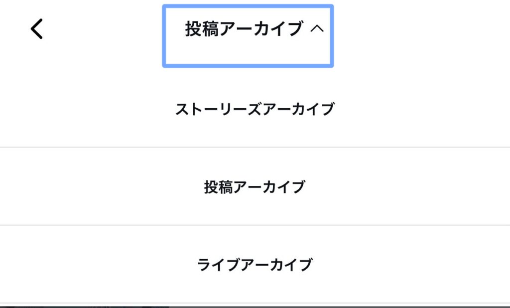 - 上部のプルダウンをタップし「投稿アーカイブ」を選択