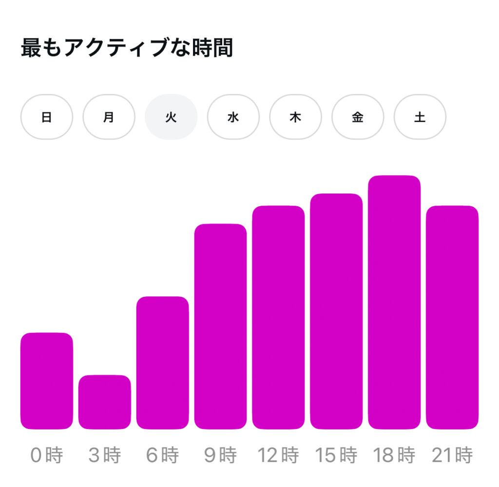 投稿の内容に関わらず、見てもらうチャンスを逃してしまわないよう「アクティブな時間」を分析して傾向を掴んでおきましょう。