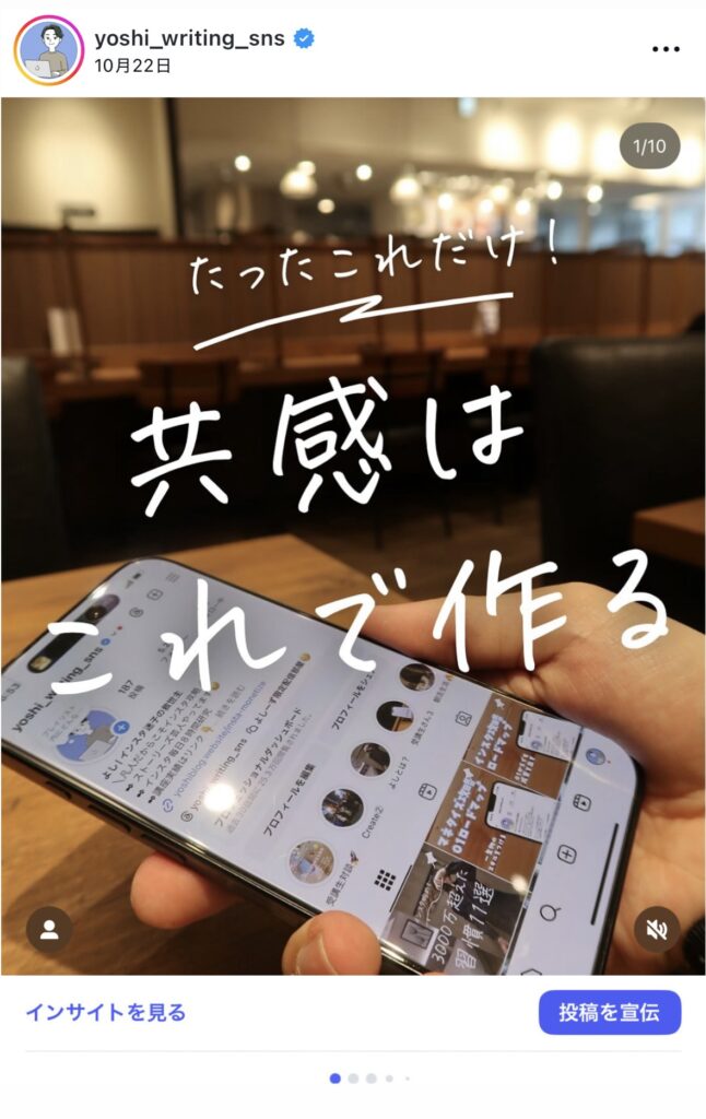 各投稿ごとにインサイトで反応を確認し、今後どんな内容がフォロワーに刺さるのか分析していきましょう。