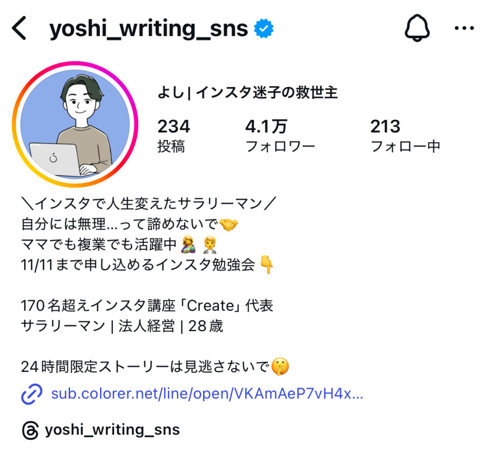 インスタを伸ばしたいと思っているあなたから見た時、僕のプロフィールにひかれませんか?