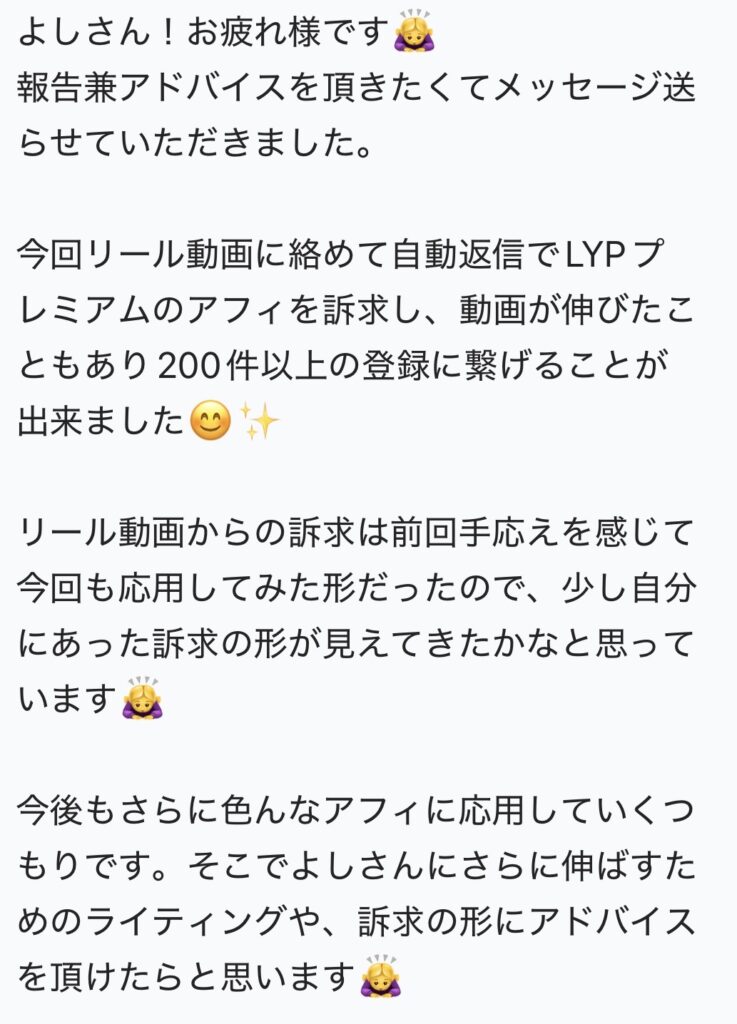 行動を促した結果、アフィリエイトの成約につなげられた講座生もいます。