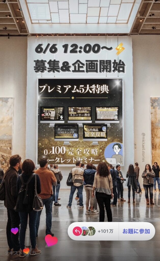 自分で作れるからこそ、どんな人かを知ってもらえるようなお題にすると効果的なストーリー発信ができるね!