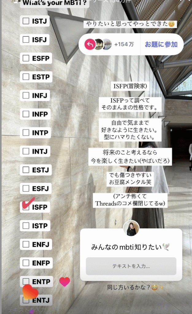 ストーリー投稿は基本的にフォロワー間でのコミュニケーションがメインですが、お題はリアクションスタンプの中でも唯一外部に拡散されます。